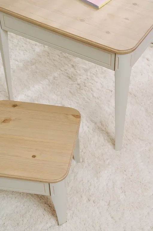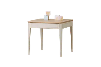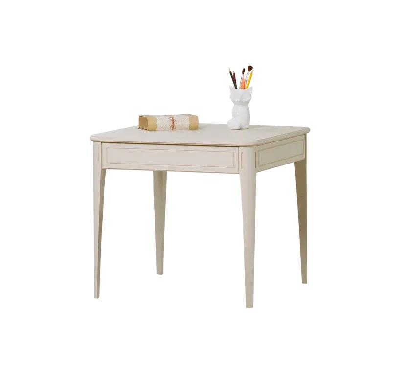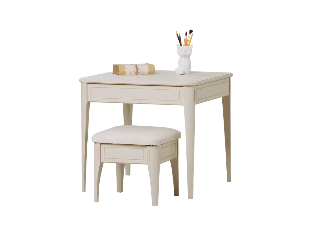 Цвет стола на титульной фотографии - скандик белый с патиной/бесцветный лак - крышка. Стоимость зависит от выбранного покрытия. При заказе мебели в составном цвете цена считается по более дорогому (в данном примере по цвету "эмали с эффектами").